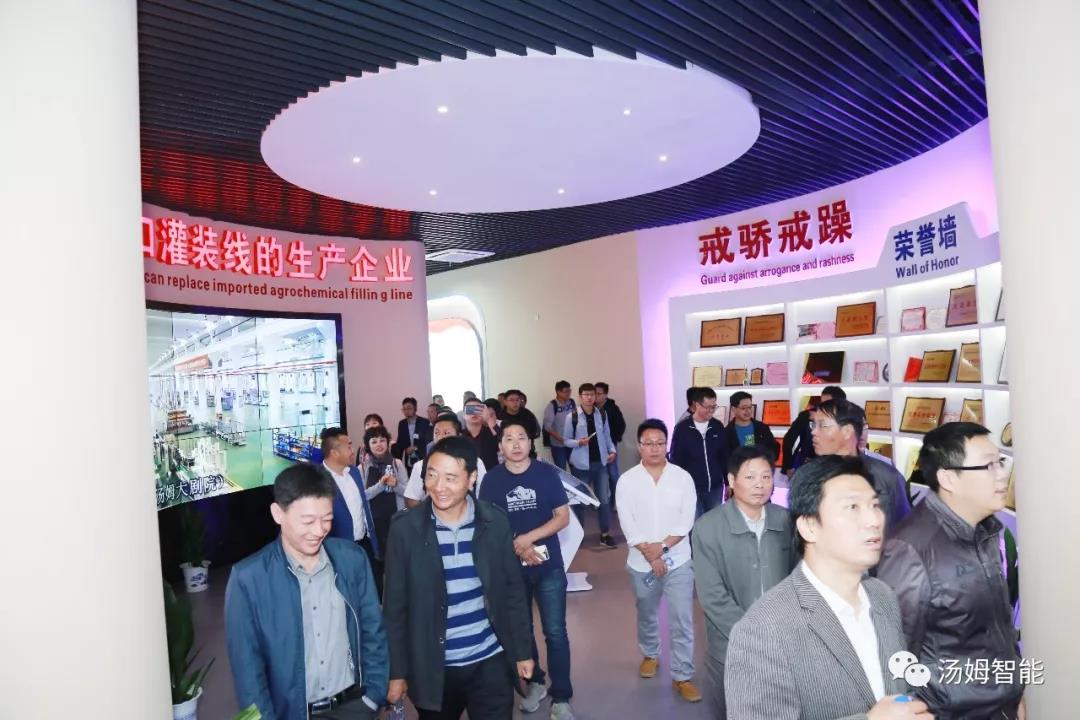 10月12日下午,參會人員參觀了江蘇湯姆集團--江蘇湯姆森智能裝備有限公司,董事長湯建華帶領(lǐng)相關(guān)人員熱情地接待了來訪客戶。江蘇湯姆森智能裝備有限公司坐落于常州市儒林鎮(zhèn)園區(qū)西路99號,是專業(yè)生產(chǎn)農(nóng)化智能設(shè)備的廠家,工廠占地150畝,建筑面積120558㎡,擁有員工710人,博士生2名,碩士研究生30名,本科358名,目前已取得ISO9001質(zhì)量體系認證、ISO14001環(huán)境管理體系認證、OHSAS18001職業(yè)健康安全體系認證、CE認證。為您規(guī)劃設(shè)計現(xiàn)代化優(yōu)質(zhì)的農(nóng)藥包裝整體方案,為您規(guī)劃全球農(nóng)化智能制劑工廠,為您強力打造工業(yè)4.0包裝自動化工廠!