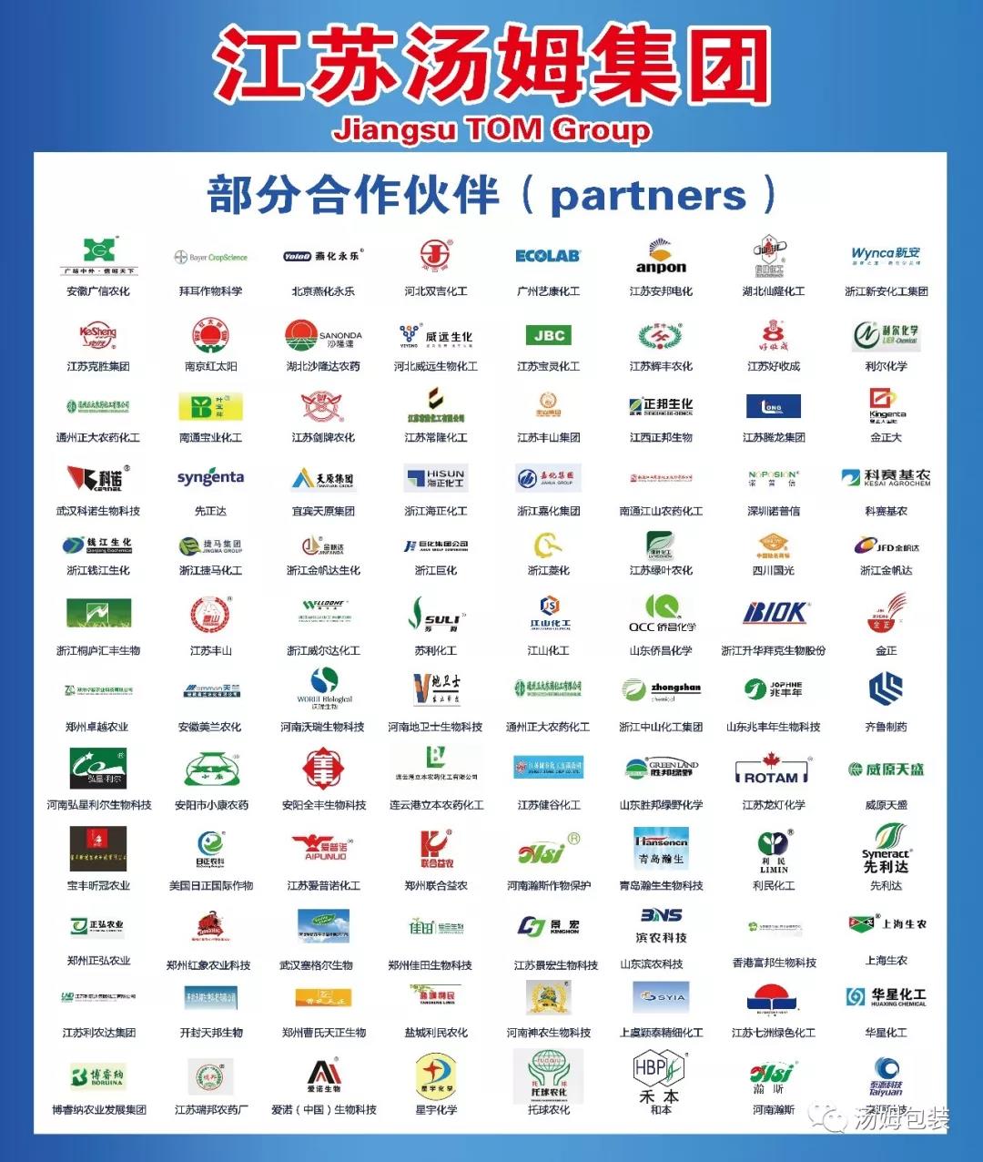 中國農化行業(yè)前100強企業(yè)其中96強是湯姆的忠實客戶,湯姆品牌在市場占有率穩(wěn)居行業(yè)前沿,高達67%。(以下是部分客戶LOGO)